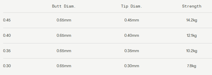 The taper is divided into three sections: Butt – 40% (145 cm / 4.8 ft), Taper – 25% (90 cm / 2.9 ft), Tip – 35% (130 cm / 4.3 ft). The butt section measures 0.65 mm / 0.026 in, which we consider an ideal match for modern Spey lines and shooting heads. This is followed by a shorter, more aggressive taper that transitions smoothly into what we believe is the perfect tippet length for this type of leader. The leader handles additional tippet with ease if you wish to extend it for a stealthier approach.